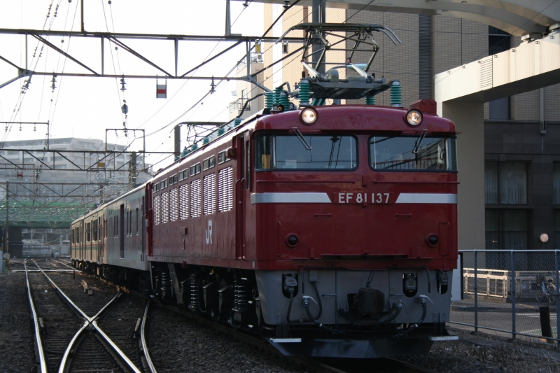 ピカピカの137牽引♪ それにしてもこの撮影地、晴れてるとこの時間はモロ影被りで恐ろしく暗くなるんだよなぁ・・・orz