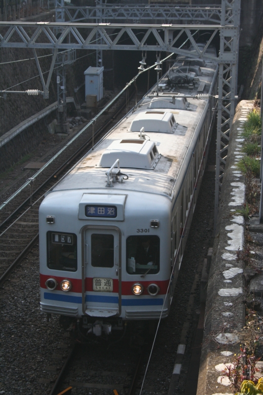 やって来たのは上野トンネルの出口w 折りしも3300のトップ編成が通過w