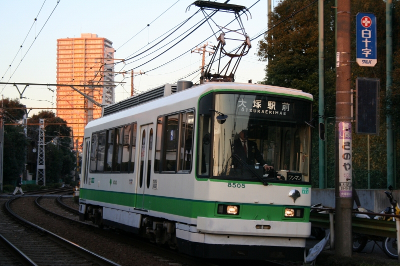 大塚駅前行きの8505号 もうまもなく露出が限界・・・