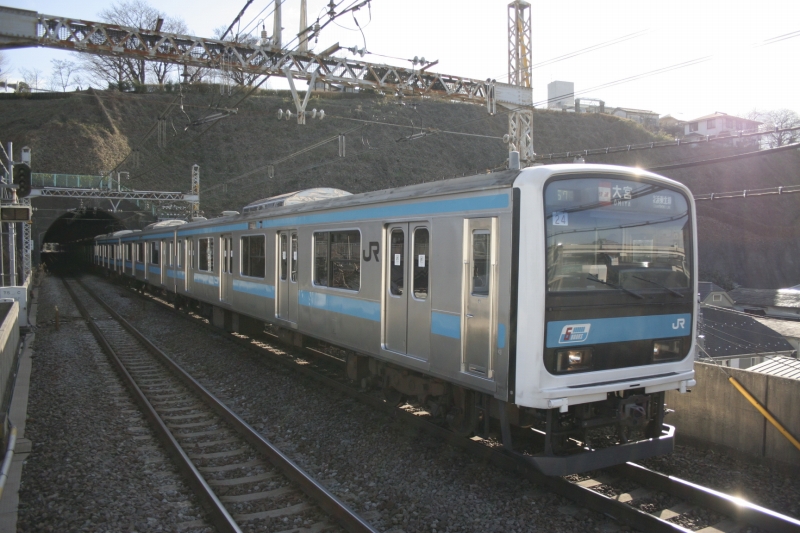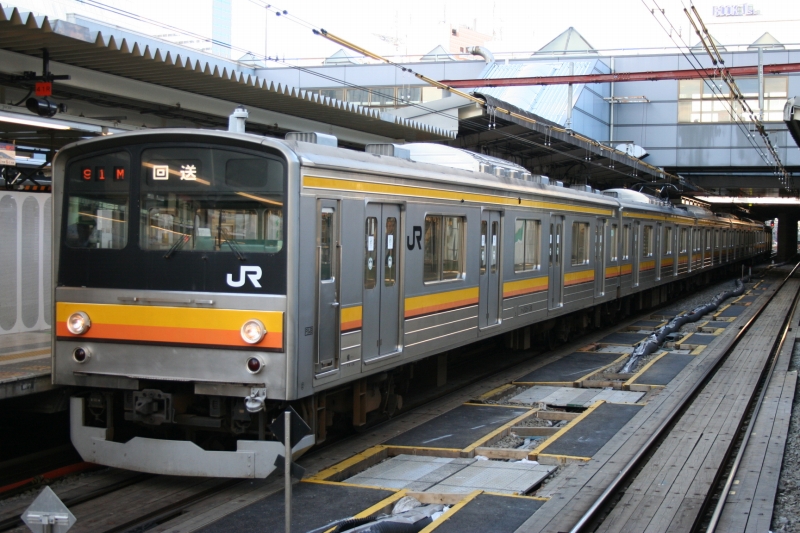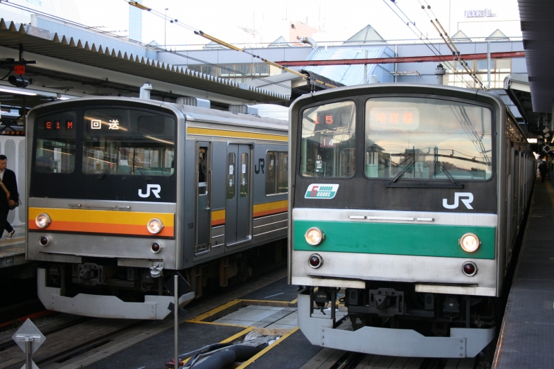 通常入線しない新宿駅に顔を見せ、大崎へ向けての発車待ちをしている南武線205系