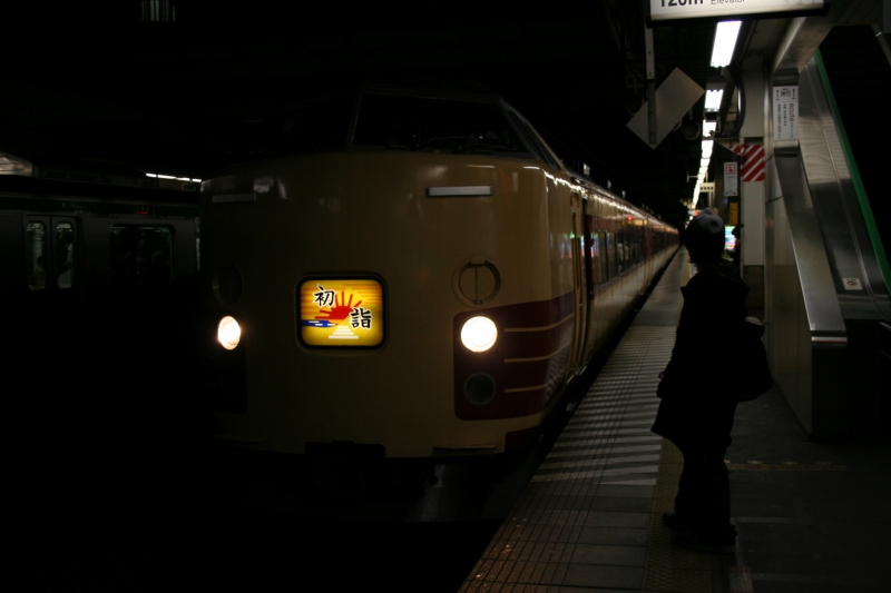 11番線にやって来た、183系OM車使用の初詣臨 暗いけどHMメインなんで、まぁいいですw(何